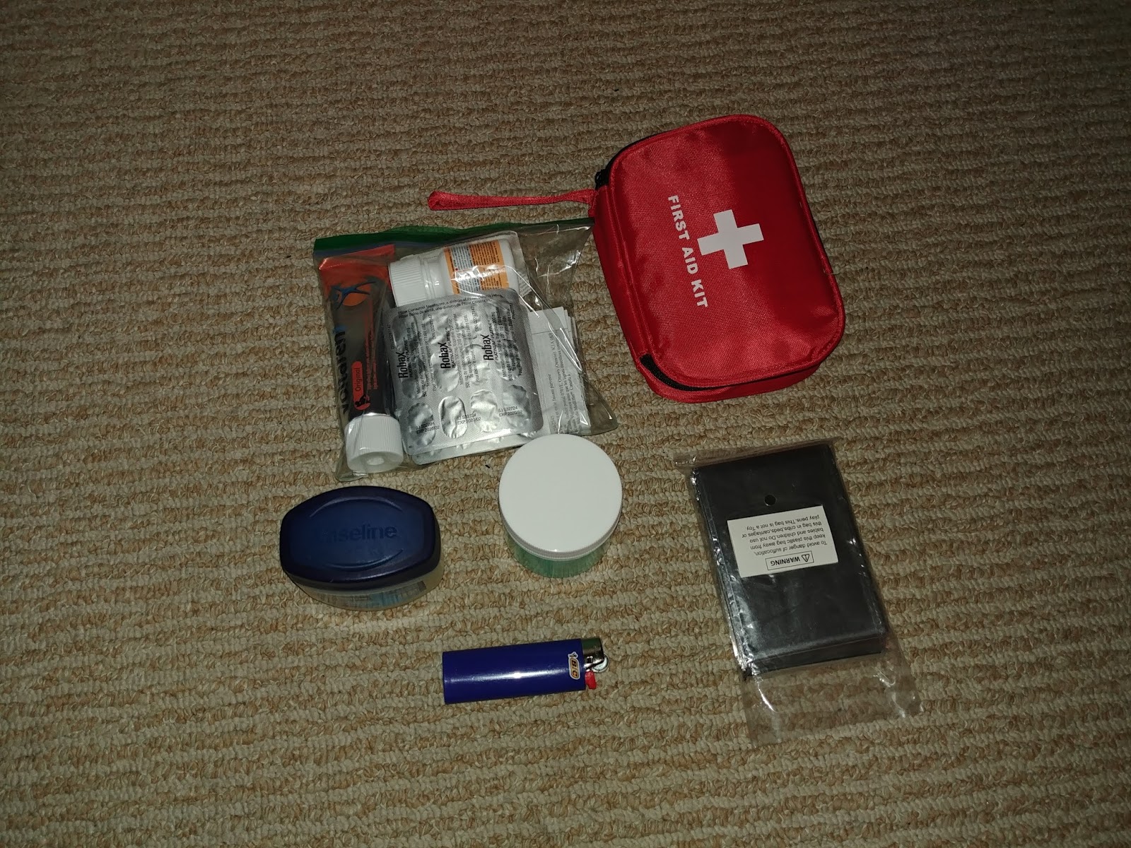 • Une trousse de premiers soins; des pansements pour guérir des ampoules (orteils, talons, plante des pieds), des pansements aseptisés, du mercurochrome, etc.